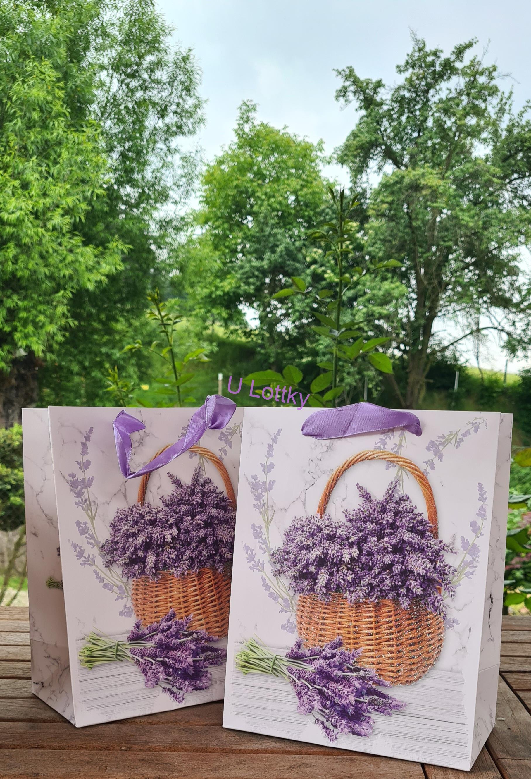 Dárková taška s motivem Levandule. Třpytivá z jedné strany