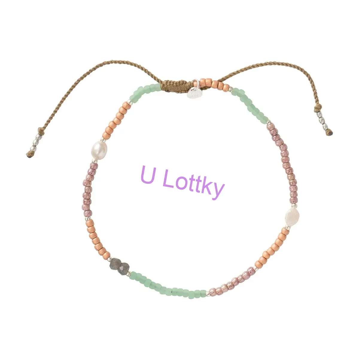 Tento Sunrise Labradorit Silver Colored Anklet of A Beautiful Story je vyroben ze skleněných korálků, mosazných korálků, drahých kamenů labradoritu a perleťových korálků. Nákotník má bavlněnou nit, kterou si můžete upravit podle svých představ. Délka kotníku je 22-30 centimetrů.