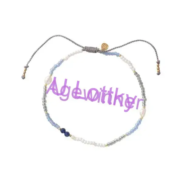 Tento nákotník Sunrise Lapis Lazuli Gold Colored Anklet of A Beautiful Story je vyroben ze skleněných korálků, mosazných korálků, drahých kamenů lapis lazuli a perleťových korálků. Nákotník má bavlněnou nit, kterou si můžete upravit podle svých představ. Délka kotníku je 22-30 centimetrů.
