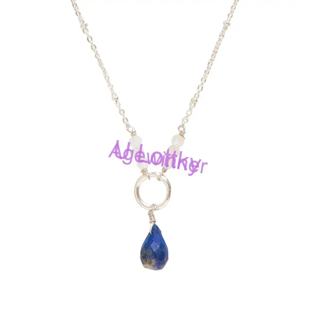 Představujeme Wanted Lapis Lazuli Měsíční kámen postříbřený náhrdelník krásného příběhu. Tento elegantní náhrdelník je vyroben z postříbřené mosazi a obsahuje malé drahokamy měsíčního kamene a fasetovaný drahokam lapis lazuli v krásném tvaru kapky. Náhrdelník je ručně vyráběný a má délku 45 - 48 centimetrů.